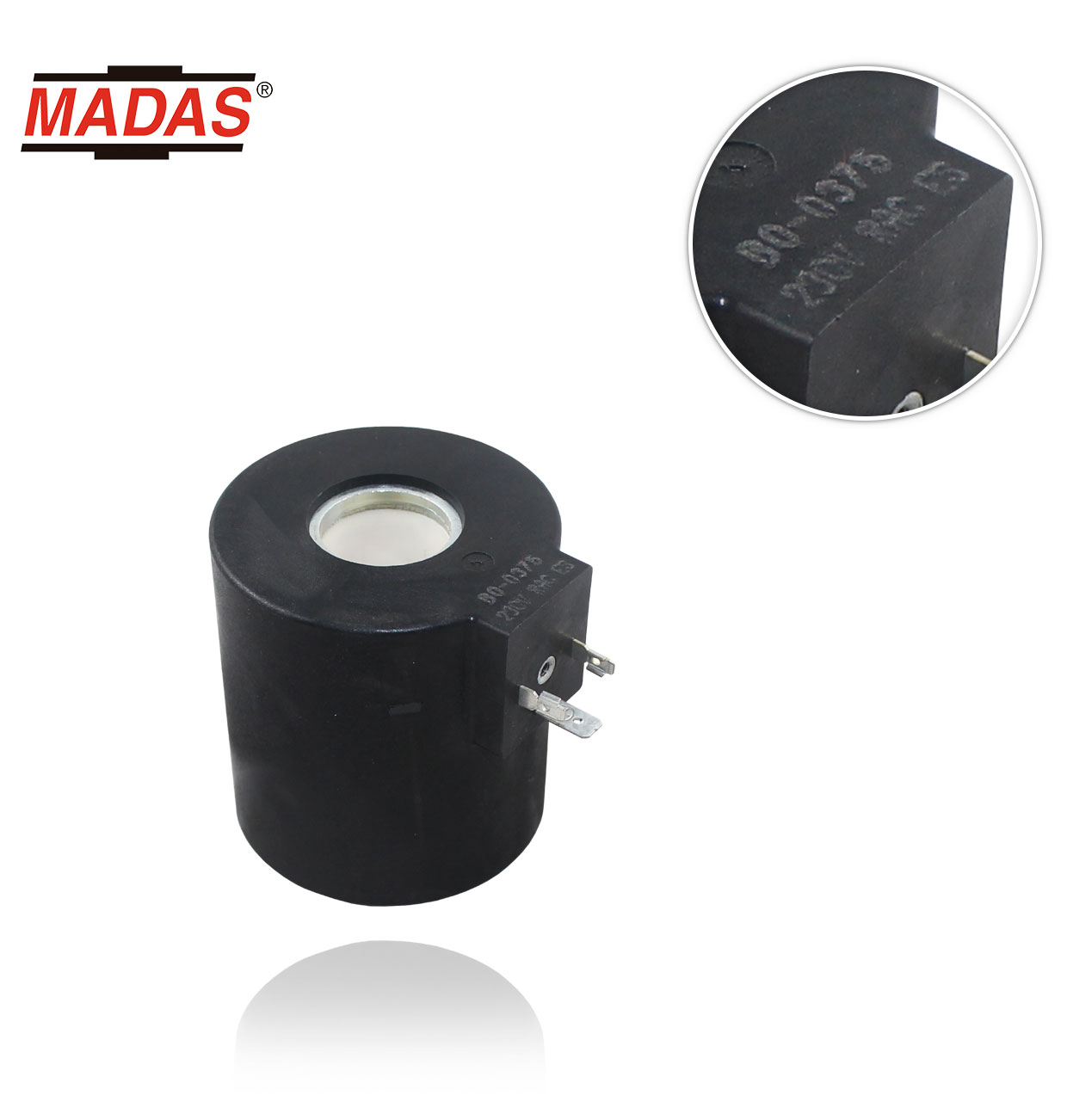 Electric coil with connector for MADAS EVPC/NC solenoid valves from 1"1/4 to 2" and from DN32 to DN50 - Voltage 230V 50-60 Hz - Power consumption 89 VA / 25 VA - Connector size 30