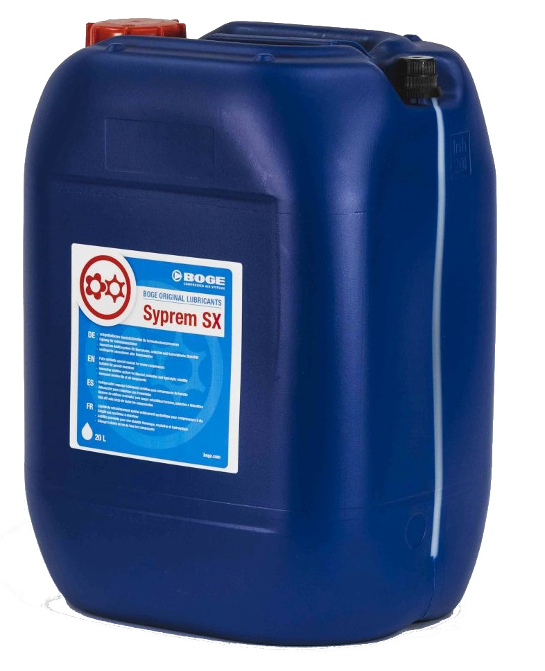 Huile synthétique BOGE Syprem SX pour compresseur à vis - Liquide de refroidissement entièrement synthétique à haute résistance au cisaillement - Bidon de 20 litres
