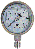 Manomètre - Raccord en inox Au bas / Radial - Boîtier en Inox 304 - Avec glycérine - Diamètre raccordement: 1/2'' - Plage de pression: (-1)-0bar - Diamètre cadran: 100mm - Classe de précision: 1,6