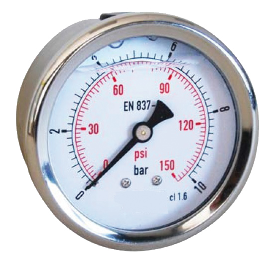 Manomètres Ø 100mm - Inox 304 - Rac. au dos Inox - 1/2'' - Glycérine - (-1)-0bar - Cl.1