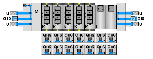 - Ilot composé de 5 distribteurs double 3/2 NF et 2 positions de réserve.