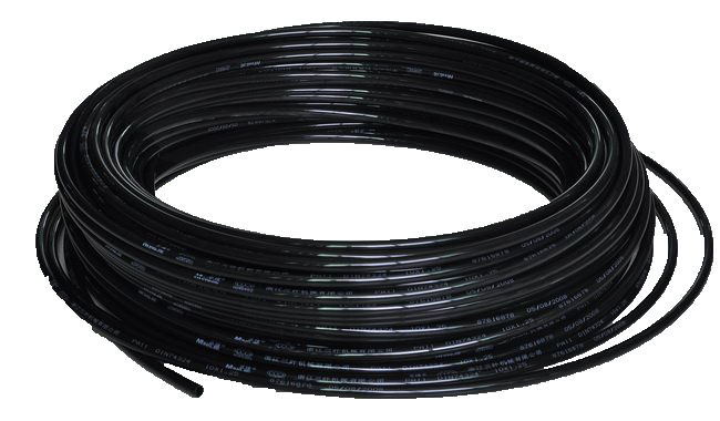 Tube Simple en Polyuréthane - Droit en bobine - Noir - Longueur: 100 m - Diamètre du tube (mm): 4 x 2,5 mm - T° de service du fluide: (-)40°C à (+)60°C - Pression d'utilisation: 22 bar