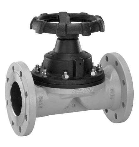 Vanne à membrane - Corps en Fonte GG25 - Etanchéité en EPDM - Raccordement A brides en DN100 - PN10 - GN16 - A commande Manuelle - T° de service du fluide: (-)20°C à (+)130°C